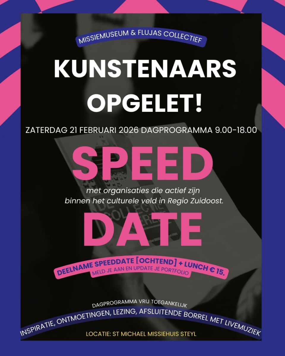 Op 21 februari 2026 organiseren het Missiemuseum samen met FLUJAS Collectief een dag vol ontmoetingen, gesprekken en inspiratie. Tijdens deze dag kun je via speeddates in contact komen met verschillende organisaties die actief zijn binnen het culturele veld.