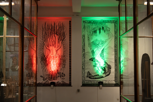 Sinds 2021 heeft Danielle Lemaire contact met gepensioneerde SVD-missionarissen. Voor haar installatie bestudeerde zij de teksten van Indoloog pater Piet Heerkens en de archieven en verzameling van broeder Wiel Swinkels, verbonden met Flores en Papoea Nieuw-Guinea. De tekeningen verkennen natuurreligie, mythologie en kosmologie. Lemaire verbeeldt verhalen waarin missionarissen en de lokale bevolking elkaar ontmoeten en, voorbij hun verschillen, een gedeelde spirituele taal vinden.